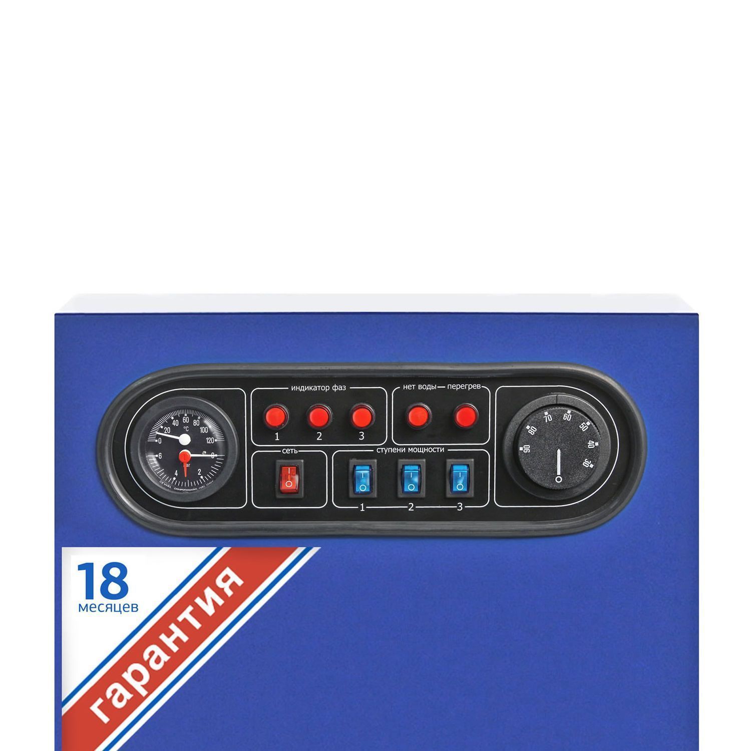 Монтируется на стене, занимает мало места и не требует отдельного помещения для размещения, имеет встроенный термоманометр. Котел имеет каскадное включение ступеней, контролирует наличие теплоносителя, входное напряжение, имеется возможность подключения дополнительного реле протока и термостата-программатора.